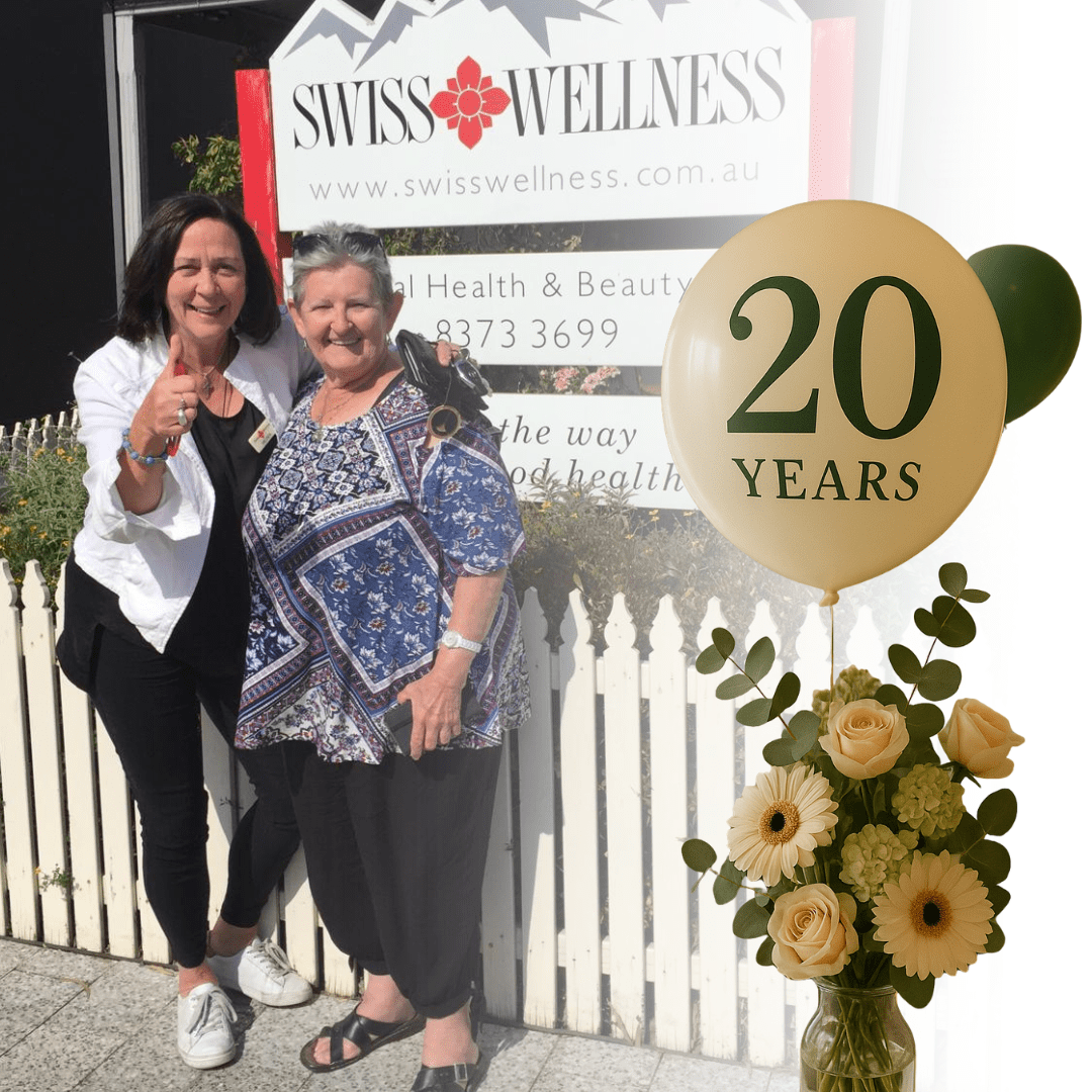 To celebrate this 20-year milestone, we’re giving back to the community that has supported us. Throughout October, selected King William Road businesses will be gifting $20 Swiss Wellness vouchers with purchases, inviting more locals to experience our treatments.